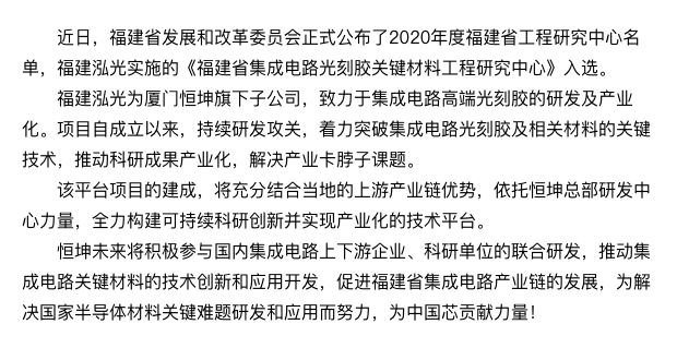 硬核重磅!福建泓光獲光刻膠省級(jí)工程研究中心認(rèn)定
